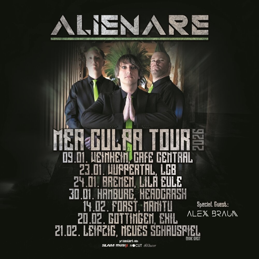 ALIENARE tauchen die Clubs in grünes Licht Tauche ein in die pulsierende Welt von ALIENARE! Die Synthiepop-Juwelen der schwarzen Szene sind zurück mit einer heiß ersehnten Tour durch Deutschland. In zwölf atemberaubenden Shows entführen ALIENARE ihr Publikum in eine audiovisuelle Erfahrung der Extraklasse. Bekannt für mitreißende Konzerte, die zum Mitmachen und Feiern einladen, verspricht auch diese Tour wieder unvergessliche Nächte. Erlebe das visuelle Feuerwerk und tauche ein in eine Welt von (meist grünem) Licht, während die Klänge von ALIENARE dich auf eine unvergessliche Reise mitnehmen.